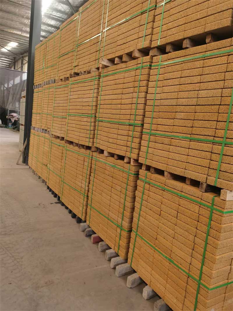 1.廣場磚大體屬于細炻磚類,吸水率<5%。原料配方中的瘠性料比例占70%,可塑性原料30%左右。
